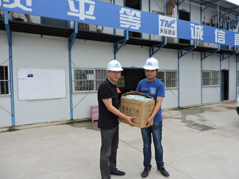 8月2日至5日,天馬建設(shè)集團總工余勝利帶領(lǐng)辦公室、工程部、策劃部一行人,冒著高溫酷暑,對集團各項目工地開展了“夏日送清涼”慰問活動,給一線工人們送去了綠豆、人丹、藿香正氣水等清涼防暑用品,讓一線工人們在酷暑中感受到了一絲舒心的涼意。