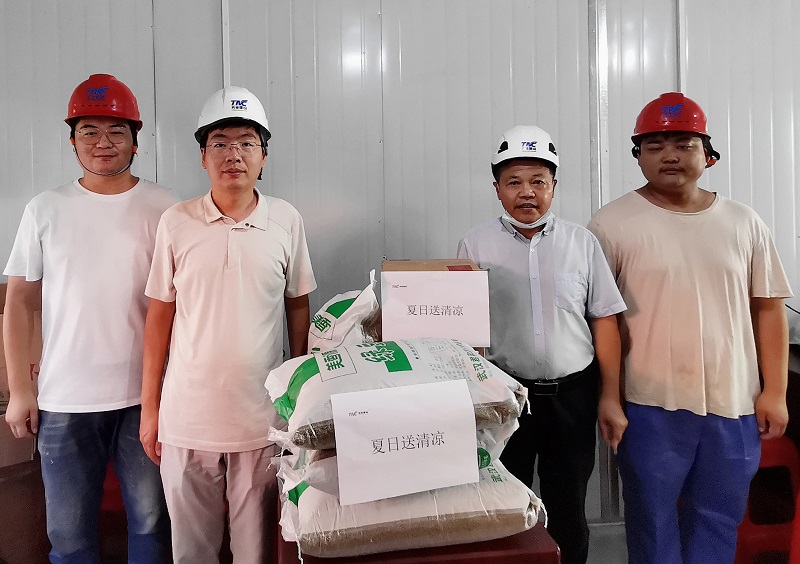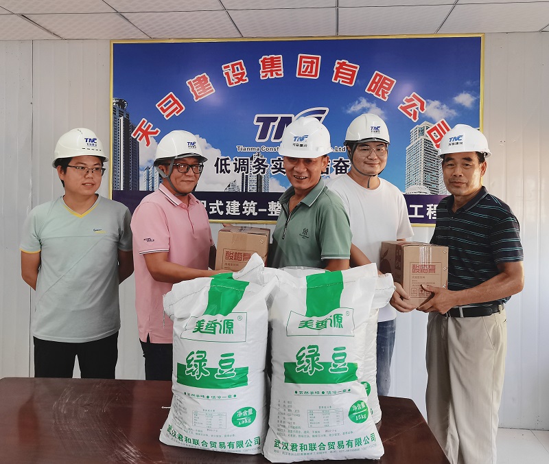 酷暑盛夏、熱浪滾滾,在我司在建工地上,一線施工人員頭頂烈日、揮汗如雨,正緊張有序的推進項目建設。為關(guān)心關(guān)愛一線建筑工人的身體健康,切實做好高溫天氣建筑工地防暑降溫工作,集團組織開展夏季“送清涼”慰問活動。由集團工會主席余勝利帶隊,總工劉剛、副總馮小龍、綜合辦主任胡海華一行深入基層,為一線工人送去了綠豆、酸梅湯等防暑降溫物資,送去絲絲涼意與關(guān)懷。