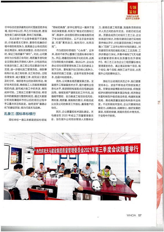 其次,企業(yè)要重視技術(shù)團(tuán)隊(duì)建設(shè)。天馬建設(shè)在2020年成立了質(zhì)量管理委員會(huì),旨在提升公司項(xiàng)目管理人員整體實(shí)力、提高在建工程質(zhì)量、加強(qiáng)各項(xiàng)目部技術(shù)人員之間的合作交流,目前已初見成效。質(zhì)委會(huì)成員們對(duì)現(xiàn)行工藝工法,企業(yè)標(biāo)準(zhǔn)進(jìn)行探討,對(duì)各在建項(xiàng)目進(jìn)行實(shí)地檢查并做出評(píng)價(jià),對(duì)在建項(xiàng)目的施工中如何融入“四新”工法作出有針對(duì)性的建議。對(duì)在建項(xiàng)目采用的裝配式施工工藝流程、工序步驟進(jìn)行深化,并集中編制了《天馬建設(shè)質(zhì)量管理標(biāo)準(zhǔn)化及質(zhì)量創(chuàng)優(yōu)手冊(cè)制作》,將工藝工法與企業(yè)工程質(zhì)量標(biāo)準(zhǔn)化管理緊密結(jié)合,真正落實(shí)到每個(gè)項(xiàng)目、每個(gè)崗位、每個(gè)流程,做到工法不空談,從而提升公司的整體實(shí)力。